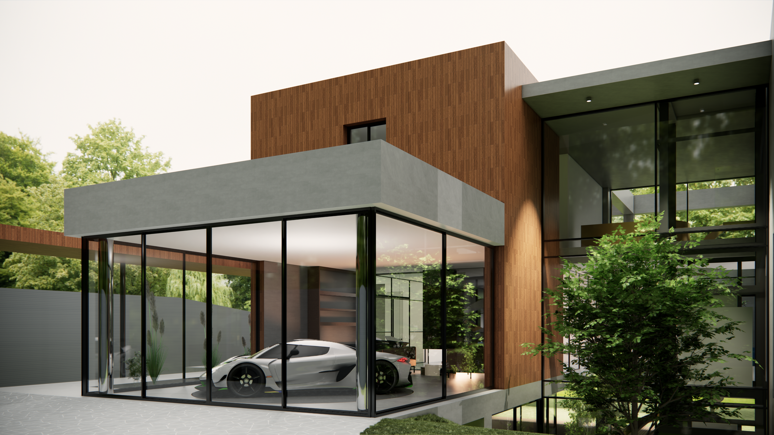 Die Architektur von „Projekt Horizont“ orientiert sich am minimalistischen und zeitlosen Stil mit klaren Linien und hochwertigen Materialien. Durch die gezielte Anordnung der Räume und die Integration der umliegenden Natur wird ein Wohnumfeld geschaffen, das die einzigartigen Blicke zur Burgruine Königstein und zur Burg Falkenstein aufgreift. Das Konzept vereint Funktionalität und Ästhetik und erfüllt zugleich die baurechtlichen Vorgaben gemäß §34. Nachhaltigkeit und Materialität Der Fokus auf Nachhaltigkeit spiegelt sich in der Wahl der Baumaterialien und der Energieeffizienz des Gebäudes wider. Die Fassade kombiniert natürliche Materialien wie Holz mit modernen Betonelementen, wodurch ein einzigartiges, harmonisches Design entsteht. Die strategische Ausrichtung des Hauses, kombiniert mit großen Fensterflächen, sorgt für optimale Lichtverhältnisse und eine natürliche Belüftung, was den Energieverbrauch minimiert und das Raumklima verbessert.